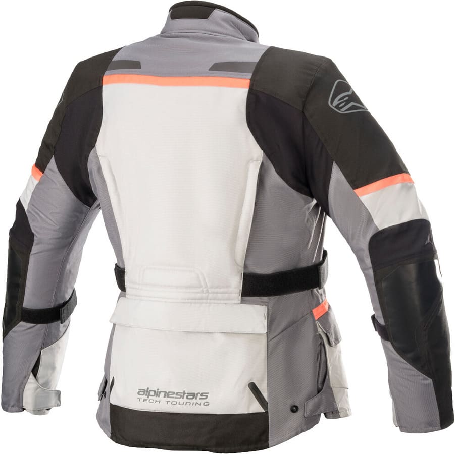 Chaqueta Apinestars Andes V3 Drystar Lady Gris hielo / Gris oscuro / Negro / Coral. Chaqueta touring con ajuste específico para mujer que incorpora la exclusiva membrana Drystar 100% impermeable y transpirable de Alpinestars. Dispone de forro térmico interior desmontable y de el nuevo sistema de ventilación directa DVS. Incorpora protecciones desmontables Nucleon Flex Plus en hombros y codos, compartimentos para montar la protección de espalda y de pecho y numerosos ajustes y bolsillos para un perfecto almacenaje.