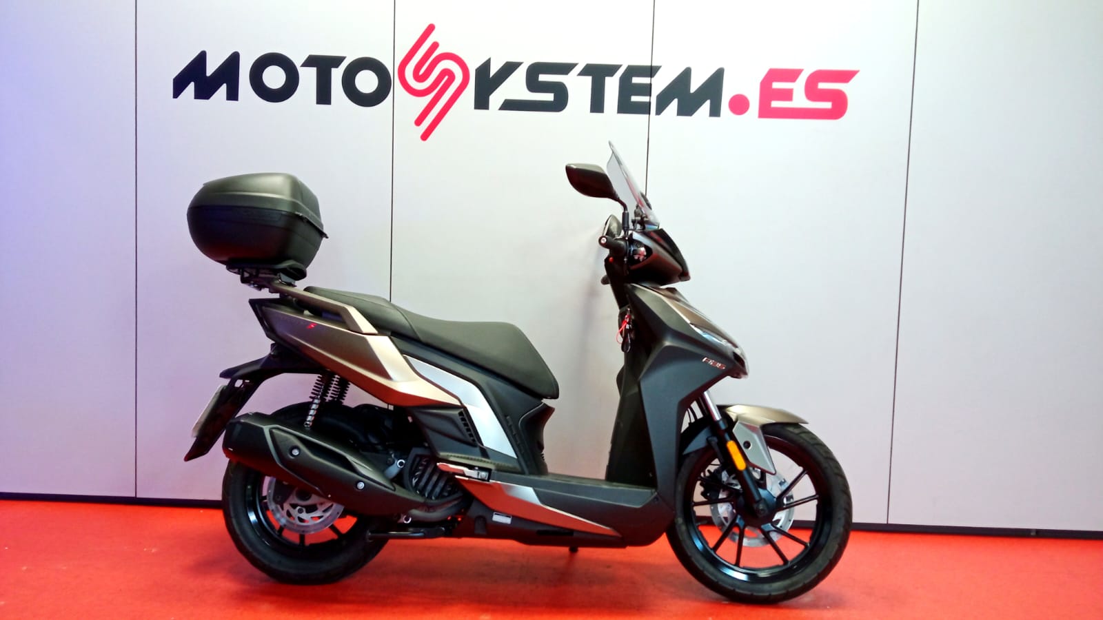 Además, incluye un baúl de serie (de la marca KYMCO) donde puedes guardar un segundo casco integral.