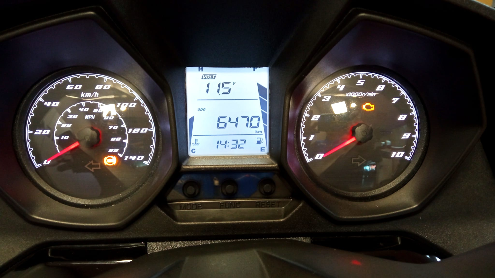 Instrumentación: dos esferas (velocímetro y cuentarrevoluciones) + pantalla LCD donde se puede ver temperatura, consumo, nivel de gasolina, etc.