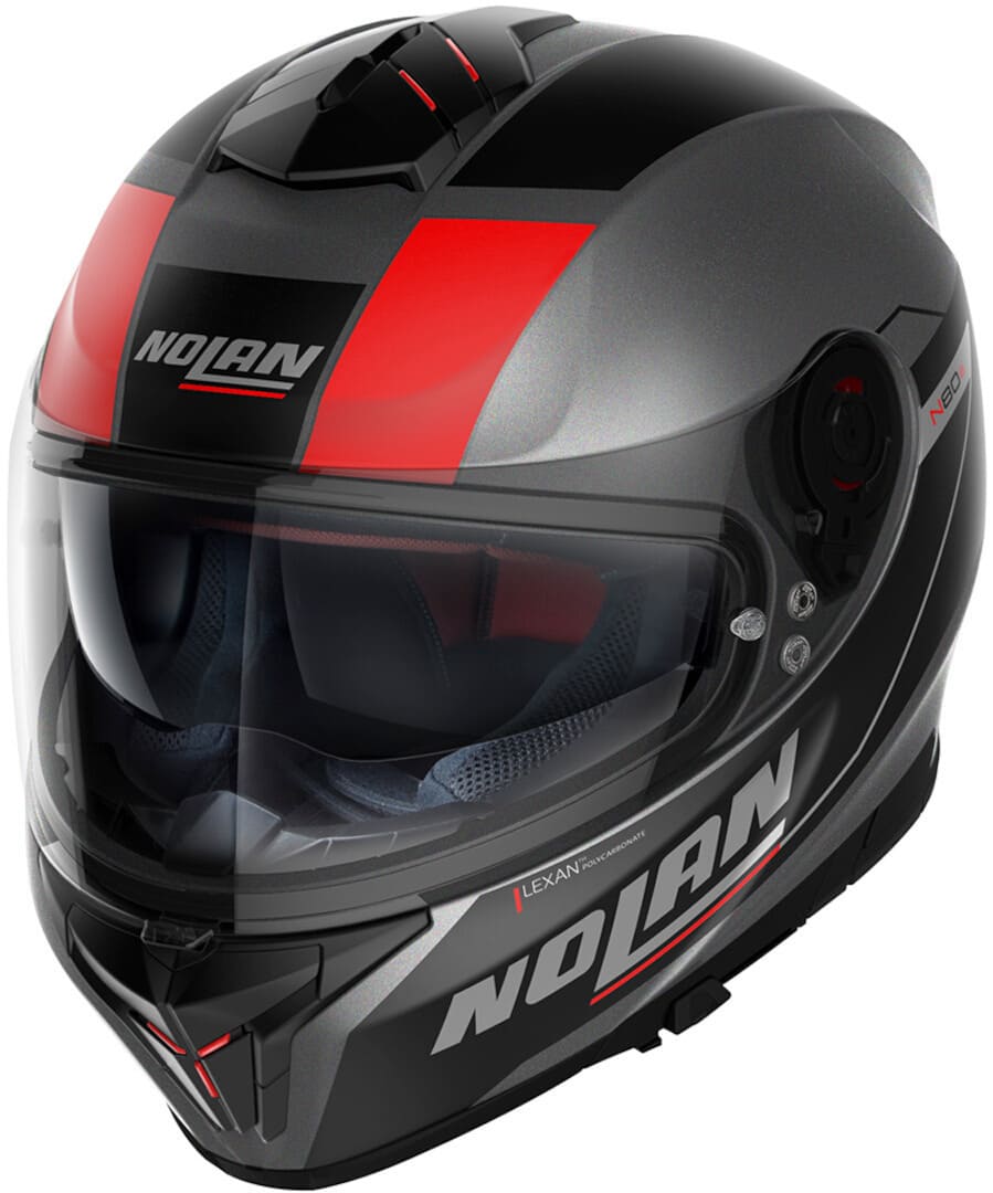 Casco Nolan N80-8 Mandrake N-Com . Se trata del nuevo casco integral top de gama de Nolan con el nuevo certificado estándar ECE22-06. Sucesor del Nolan N87, se trata de un casco ideal para todo tipo de condiciones, desde un largo viaje hasta el uso diario en la ciudad. Destacan los nuevos acolchados interiores Clima Comfort confeccionados en tejido eco-friendly, la pantalla de gran tamaño (ultrawide visor), el visor solar interior, el sistema de ventilación con Tecnología AirBooster y la predisposición para instalar el sistema de comunicación N-Com®.